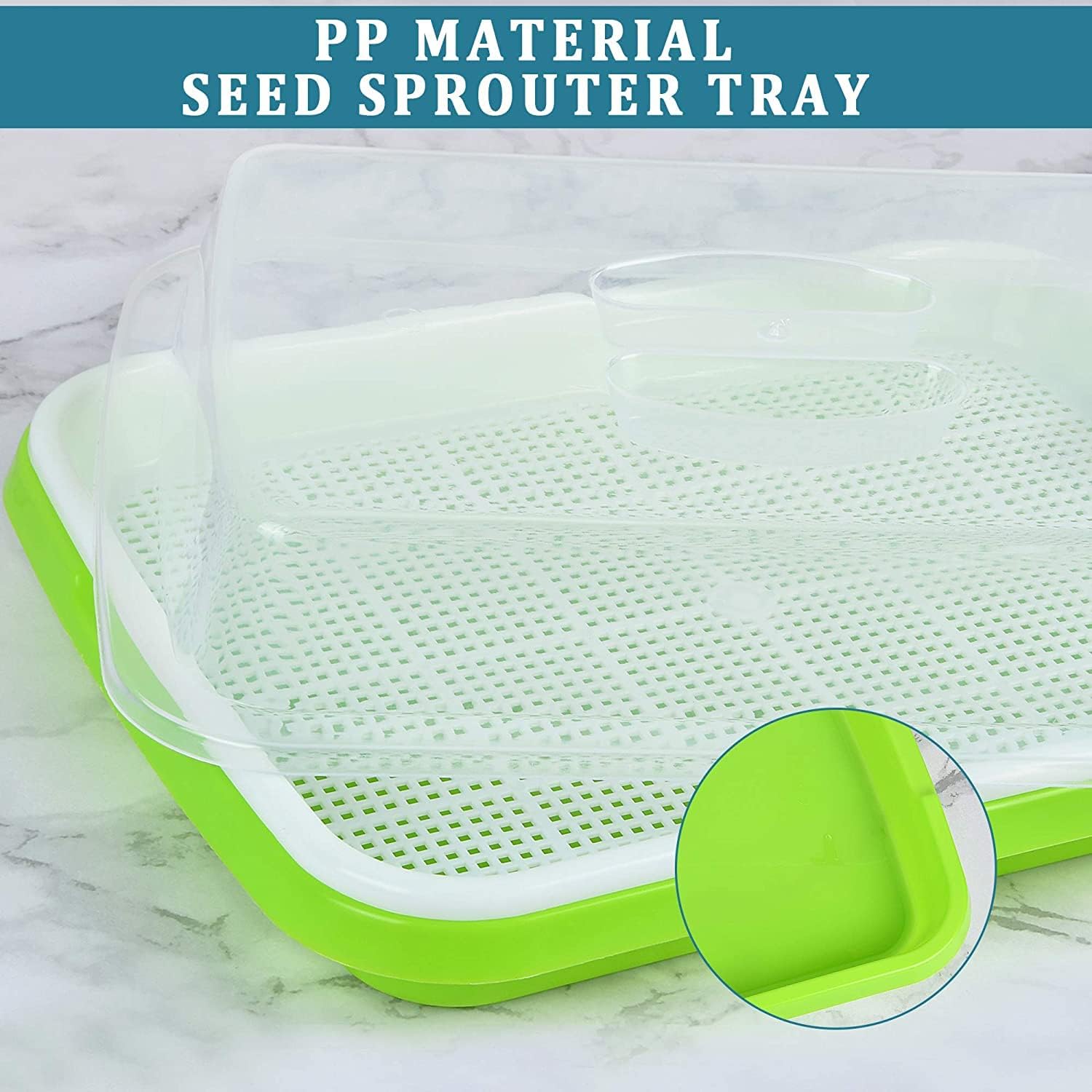 Con un tamaño de 32 cm x 26 cm x 11 cm y mallas de 3 mm x 3 mm, estas bandejas proporcionan una excelente permeabilidad al aire, vital para cultivar plántulas saludables. ¡En solo una semana podrás tener brotes densos y nutritivos!