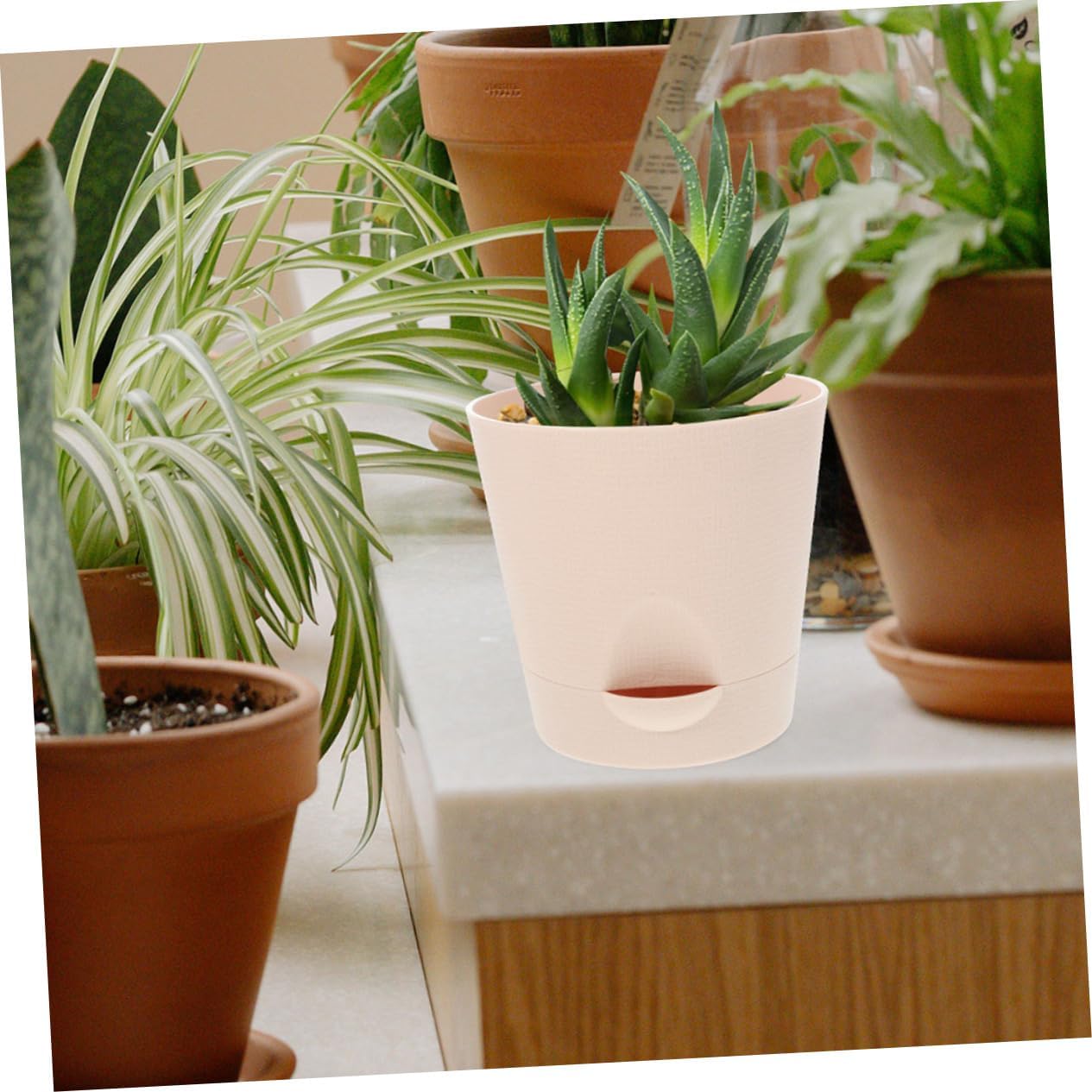 Además, estas macetas permiten optimizar el uso de nutrientes, ya que con su diseño eficiente, el agua y los nutrientes se distribuyen de manera uniforme a las raíces de las plantas. Esto no solo acelera el crecimiento de las suculentas, sino que también mejora su salud y resistencia ante plagas y enfermedades. El sistema de drenaje integrado también minimiza el riesgo de hongos y otros problemas que suelen afectar el crecimiento de las plantas en entornos no controlados.
